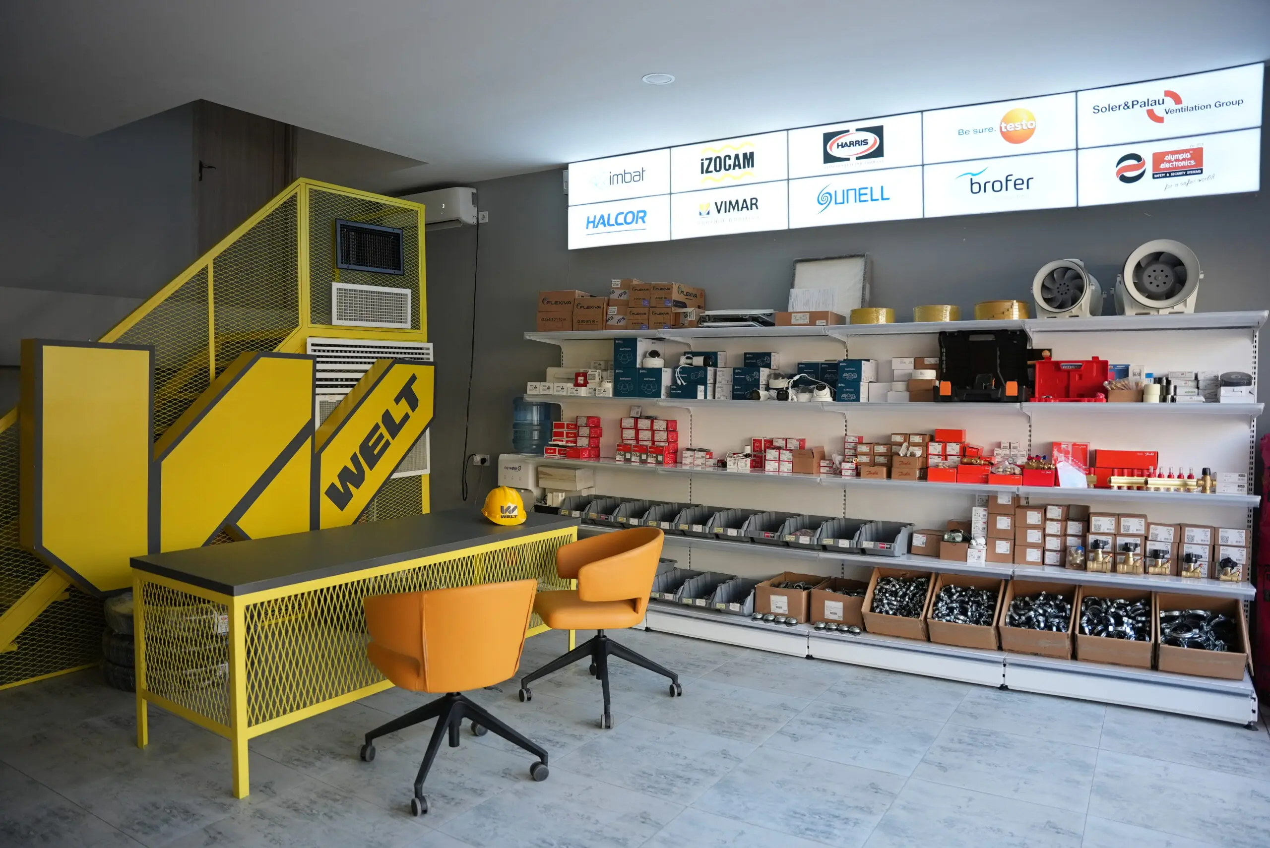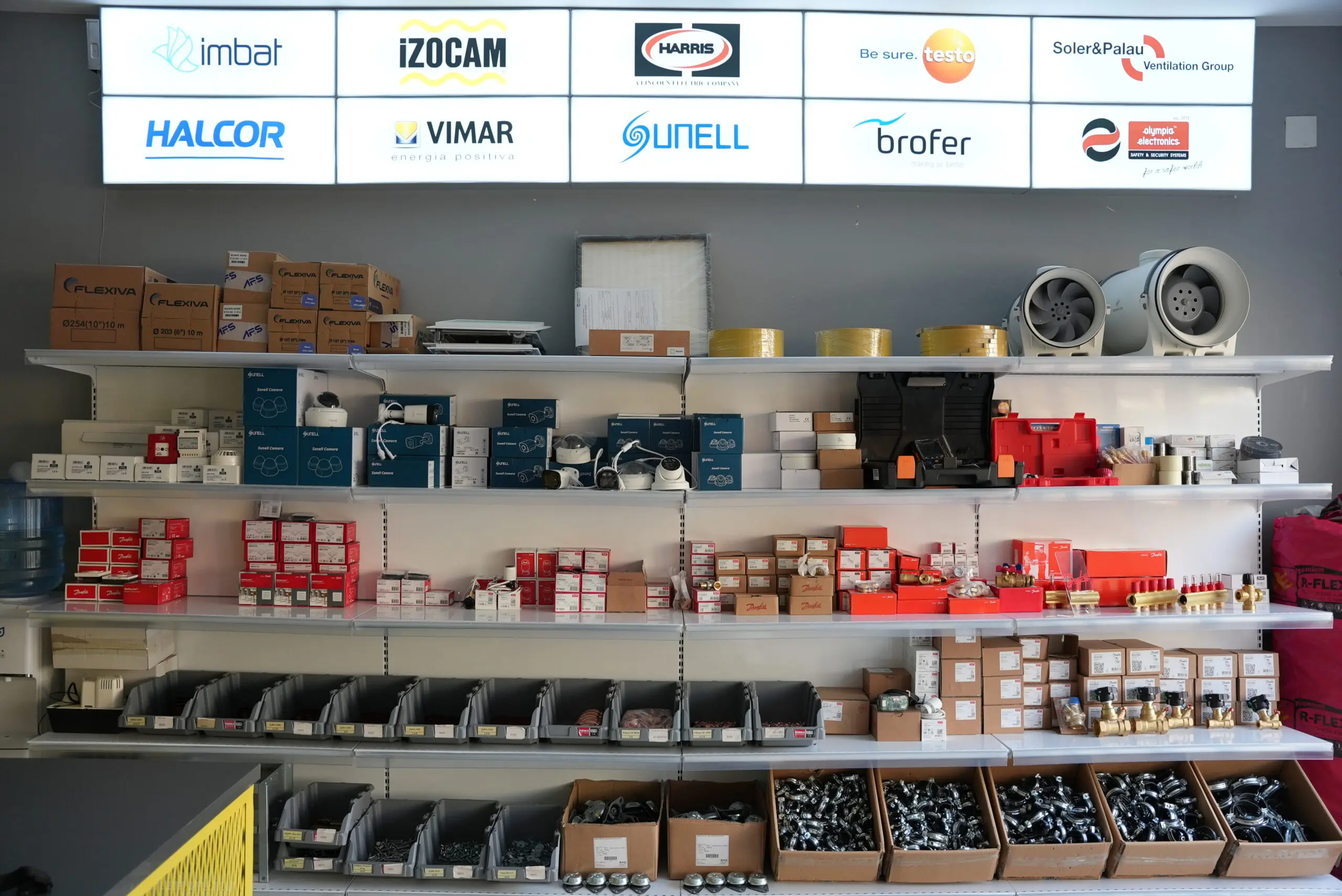 შოურუმში შეგიძლიათ პირადად შეაფასოთ Danfoss, Daikin, Halcor, Izocam, Sodeca-სა და სხვა წამყვანი ბრენდების ენერგოეფექტური გათბობის, ვენტილაციის, უსაფრთხოების კამერებისა და საინჟინრო მასალების ფართო არჩევანი.